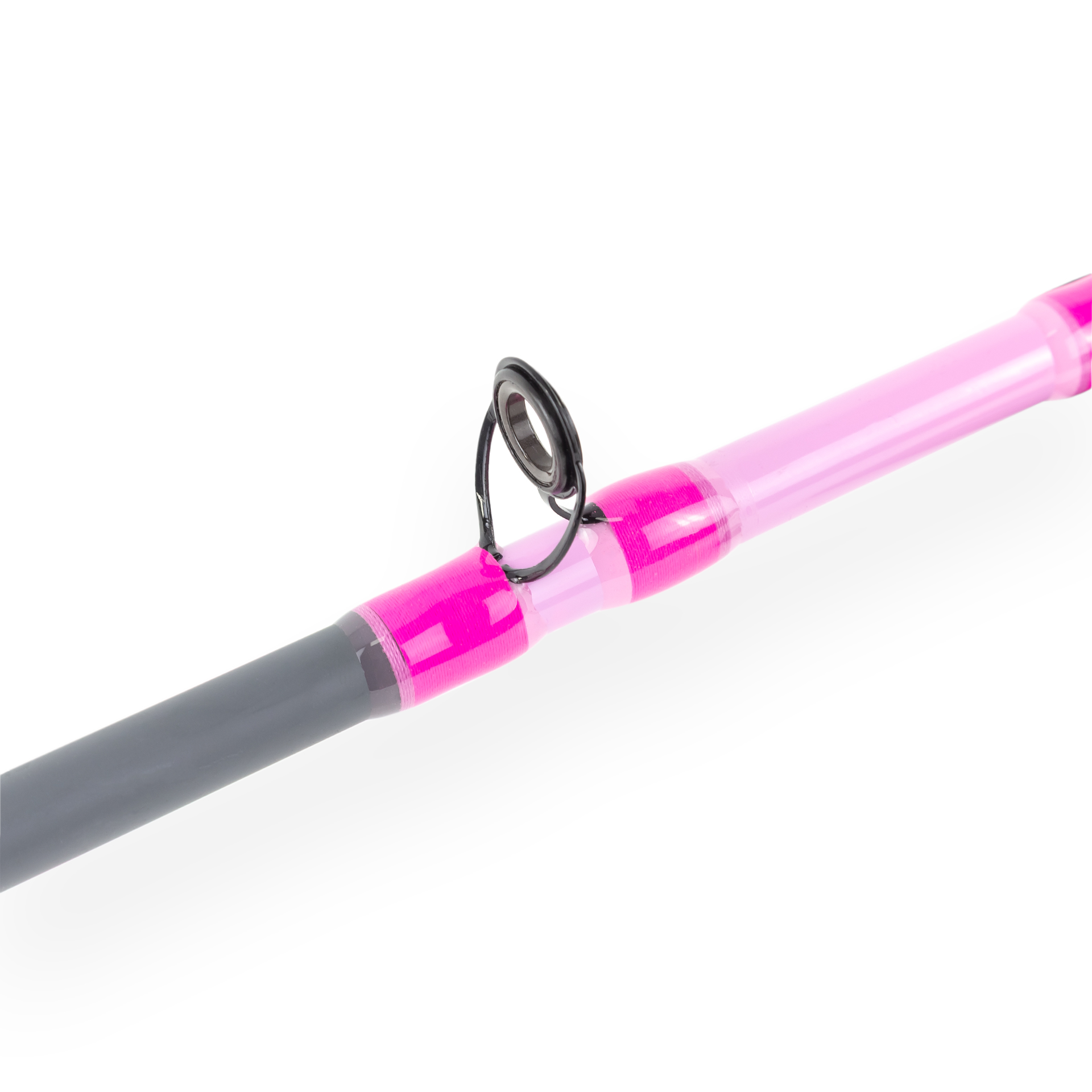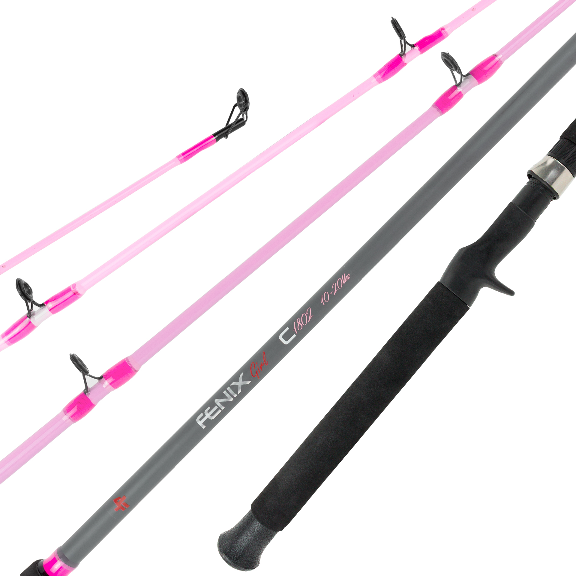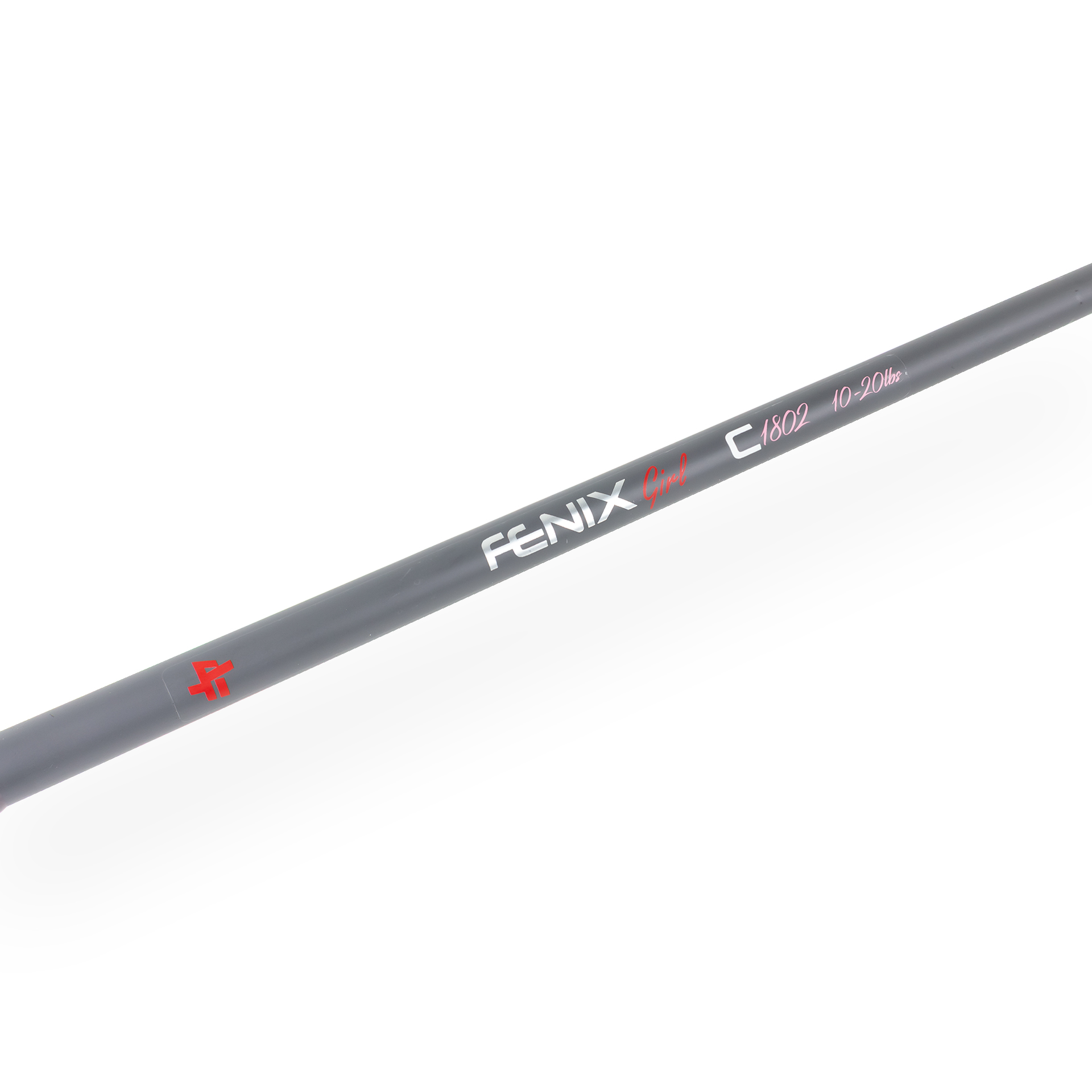 A vara Fenix Girl foi confeccionada em grafite tubular, passadores metálicos de aço revestido, cabo com Butt Cap e revestido em EVA. Essa versão possui uma cor cinza com detalhes rosa.