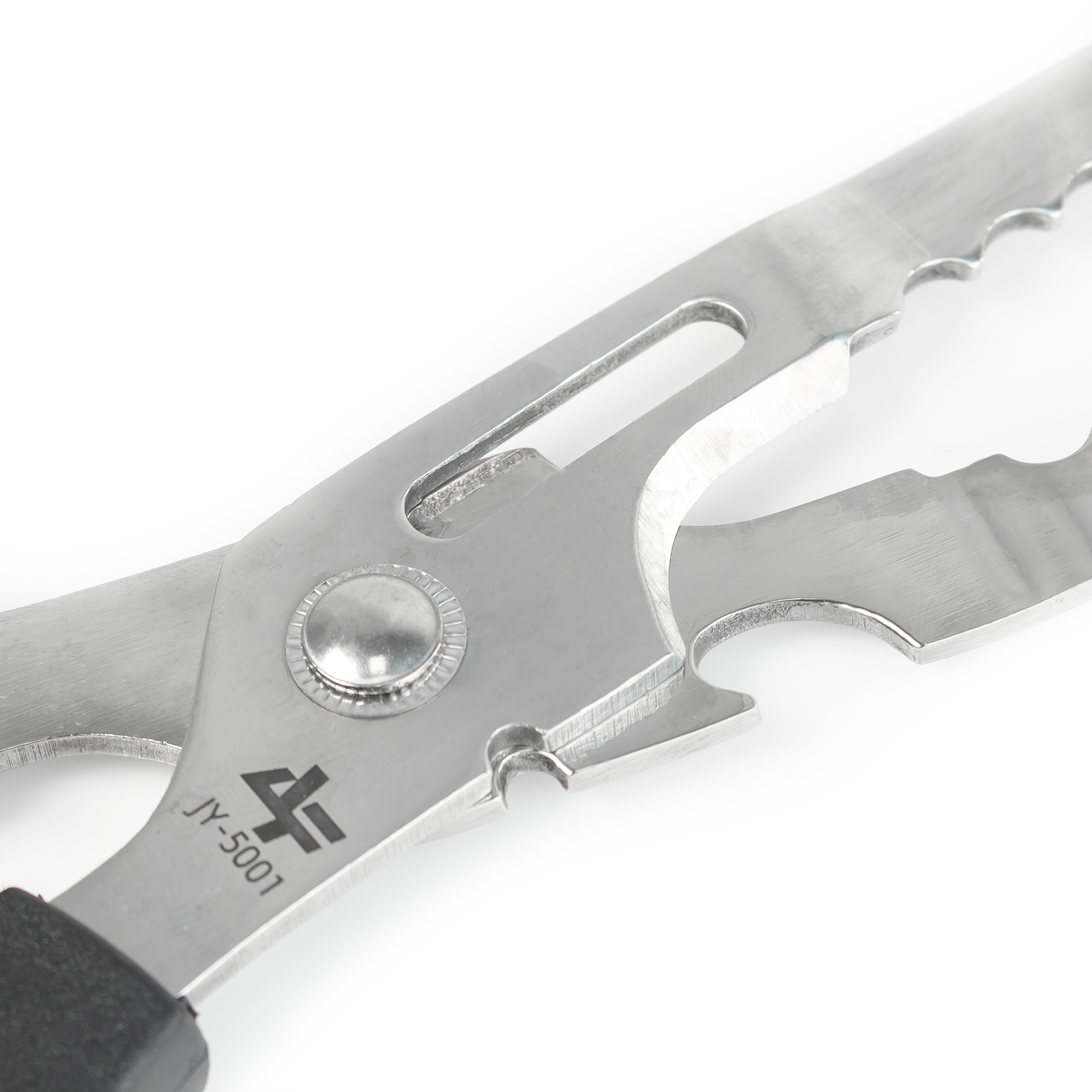 A tesoura JY-5001 é uma ferramenta versátil e resistente, construída em aço inoxidável 2CR13, ideal para quem busca praticidade e durabilidade. Possui manuseador de peixes, quebra-nozes, cortador e abridor de garrafas, reunindo várias funções em um único produto. Seu cabo em PP e TPR garante conforto e segurança no uso, com acabamento antiderrapante. Com 27,2 cm de comprimento e peso aproximado de 163 g, é leve, eficiente e perfeita para acompanhar suas pescarias e atividades do dia a dia.